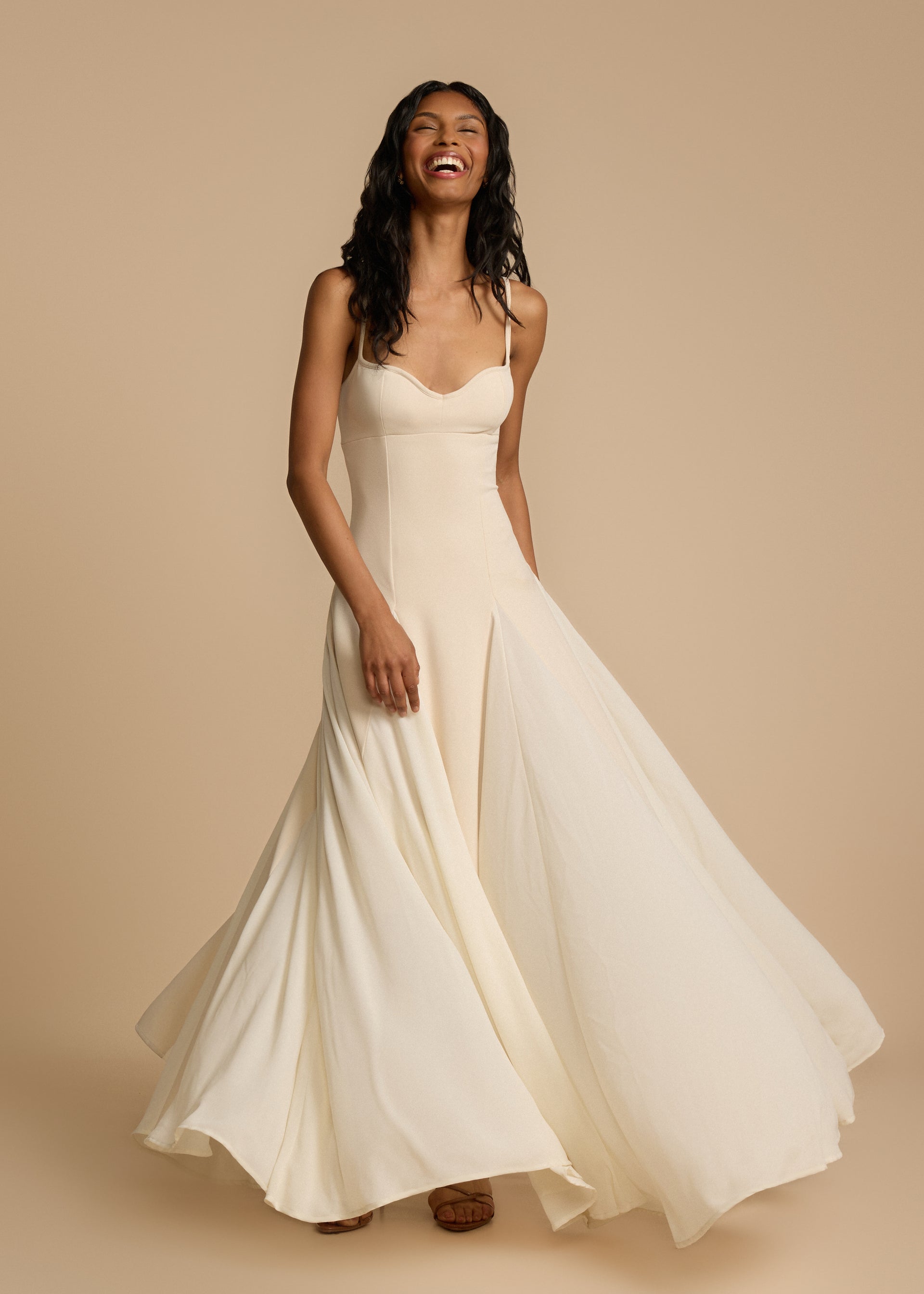Neckline: Subtle sweetheart neckline with structured contour